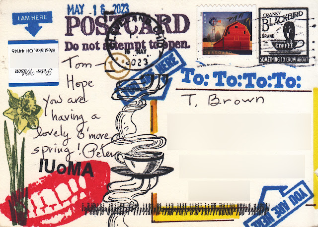 Tom Warner recently posted the following archival mail art from the late Mark Harp (1957-2004), currently set to friends only, but I reached out and he says he is open to emailing me more photos of the cards for inclusion in a future post here on Mail Art News. I look forward to that.